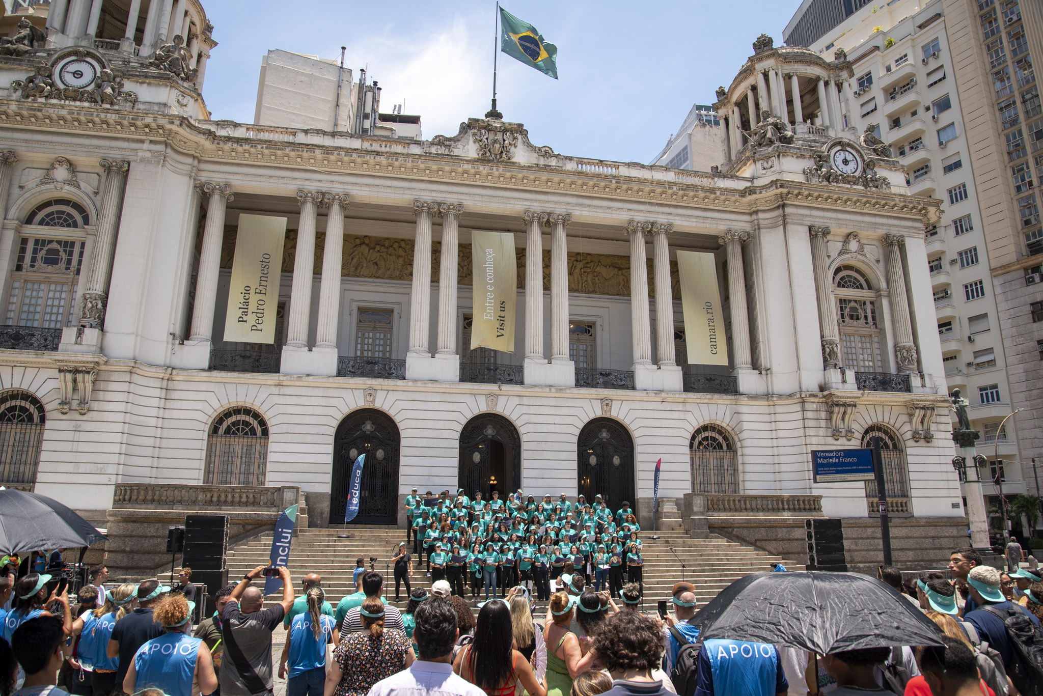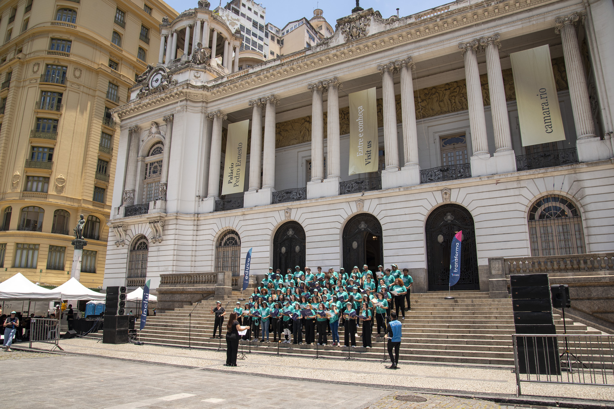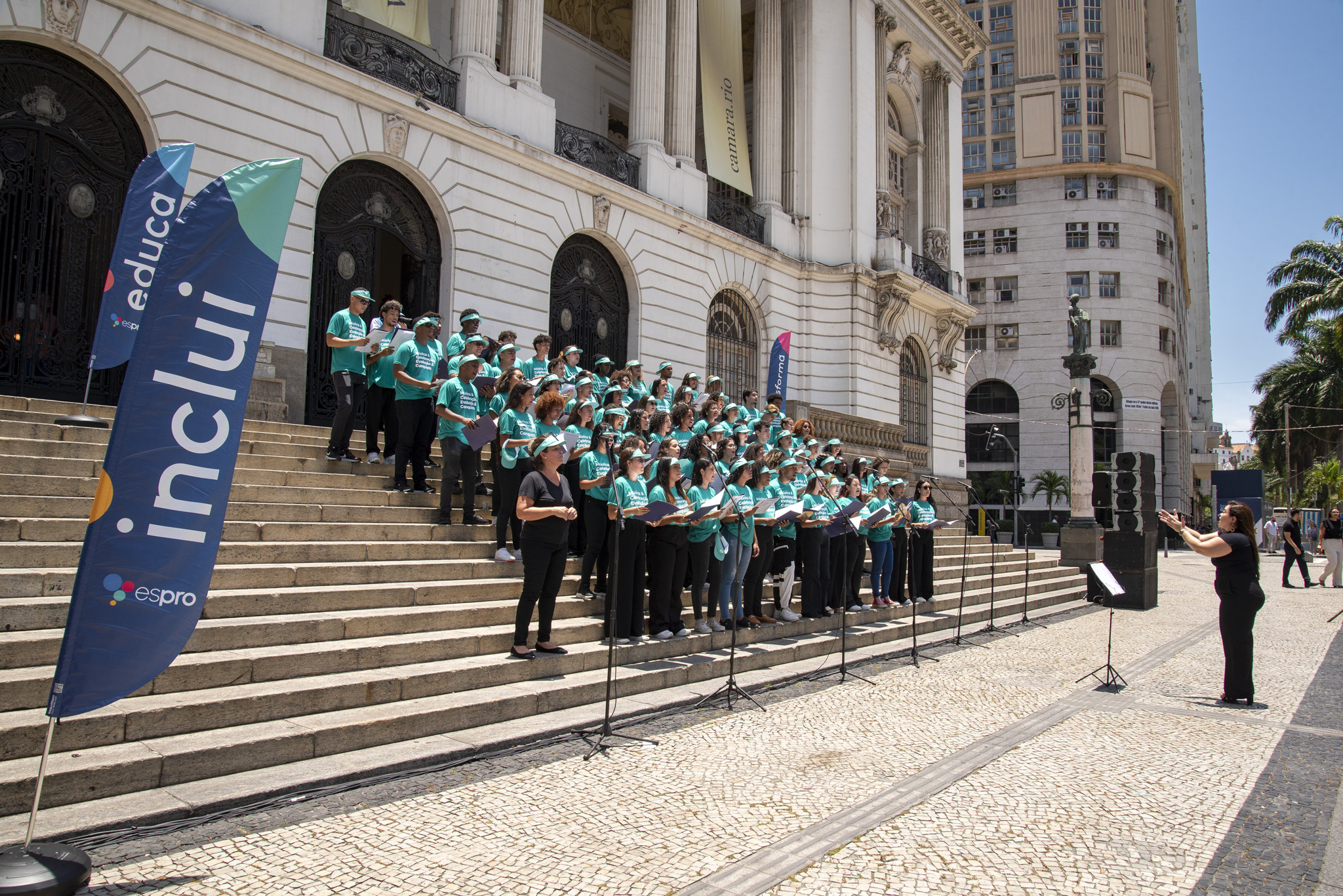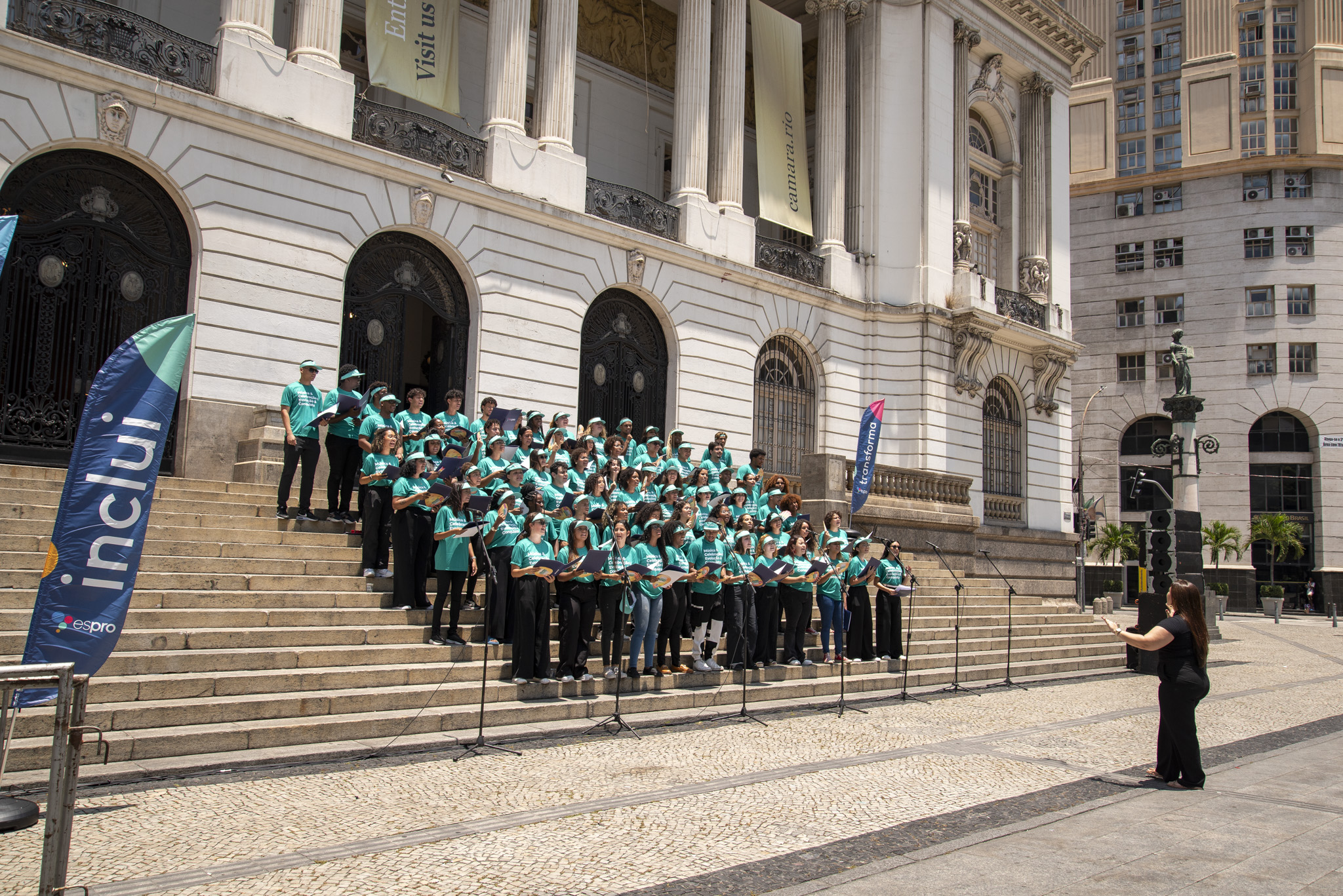 No dia 23 de janeiro, a escadaria da Câmara Municipal do Rio de Janeiro se transformou em um palco inesquecível. O Coral Espro encantou o público ao celebrar o padroeiro São Sebastião com uma apresentação emocionante. Cerca de 80 jovens aprendizes deram voz a clássicos da MPB, homenageando a beleza e a alma cultural da Cidade Maravilhosa.