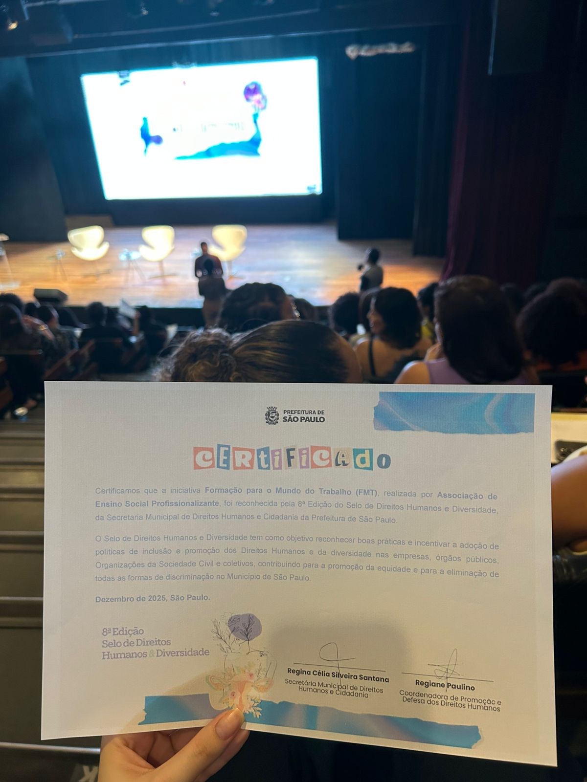 A 8ª edição do SELO premiou 121 iniciativas e organizações, e estar ali, lado a lado com instituições tão incríveis, é uma honra. A Secretária Regina Santana nos lembrou da importância do compromisso com a igualdade.
